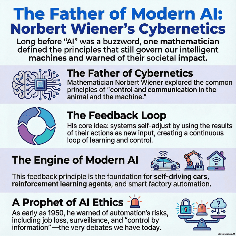 ノーバート・ウィーナーは、AIやロボットという言葉が一般化するよりもはるか前に、「動物と機械に共通する制御とコミュニケーションの原理」を探った数学者であり、“サイバネティクスの父”と呼ばれる存在だ。2025年11月26日の生誕131年は、生成AIと自律ロボットが社会インフラに組み込まれつつある今、彼の思想を「古典」ではなく「現在進行形の問い」として読み直す絶好のタイミングと言える。