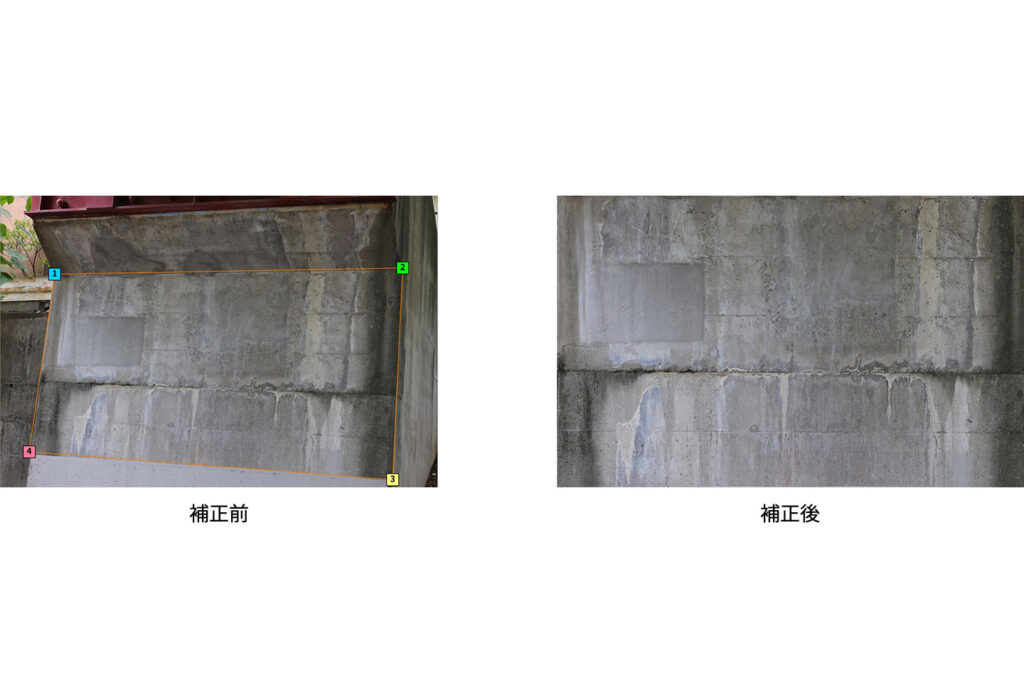 さらに、斜め撮影画像を正面視点に補正する「正対補正」や、検知不要部分をあらかじめ除外できる「非検知エリア設定」など、橋梁・トンネル・横断歩道橋・水管橋といった多様な構造物での実務運用を意識した機能を搭載している。