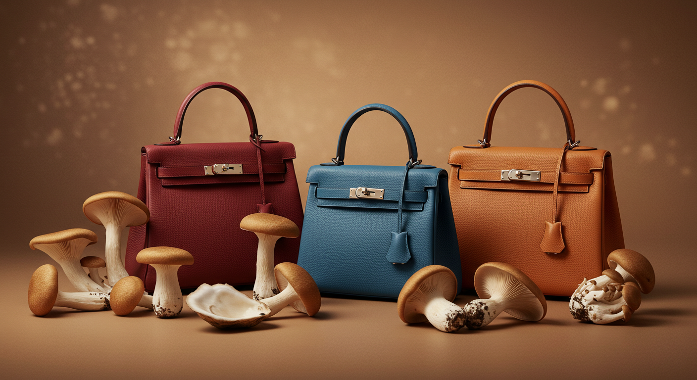 2021年3月、Hermèsが発表した「Victoria」バッグ。琥珀色のパネル部分は、動物由来ではありませんでした。MycoWorksと3年間かけて開発した菌糸体素材「Sylvania」。触感、耐久性、美しさ――すべてが本革に匹敵するこの素材は、わずか数週間で「育てられた」ものでした。