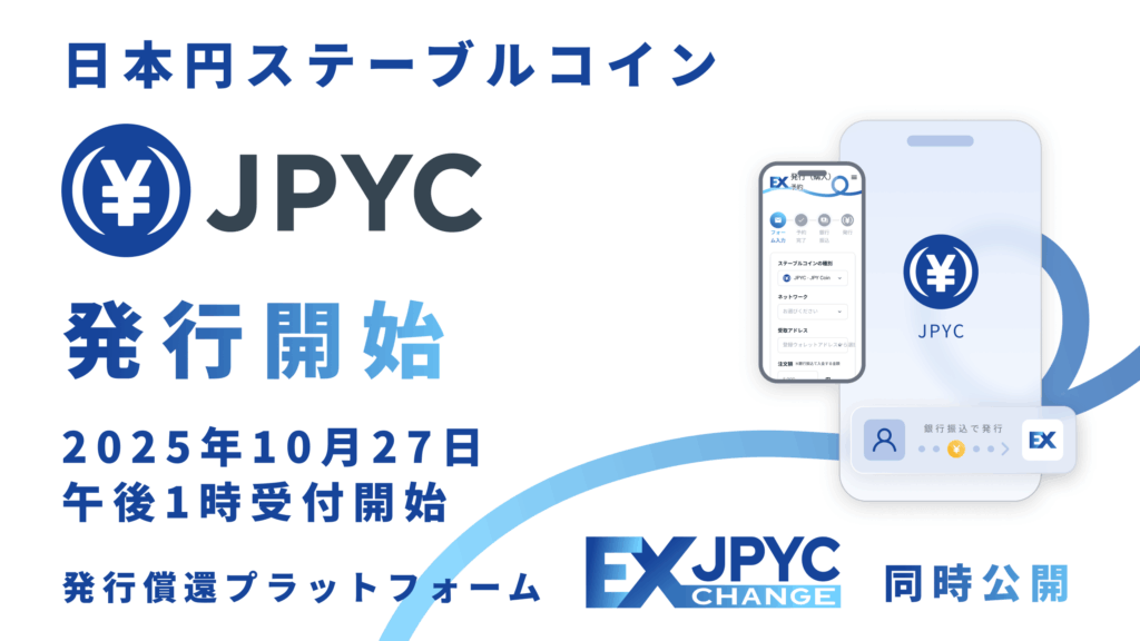 同社は2025年10月27日午後1時より、国内初となる日本円建てステーブルコイン「JPYC」の正式発行を開始する。