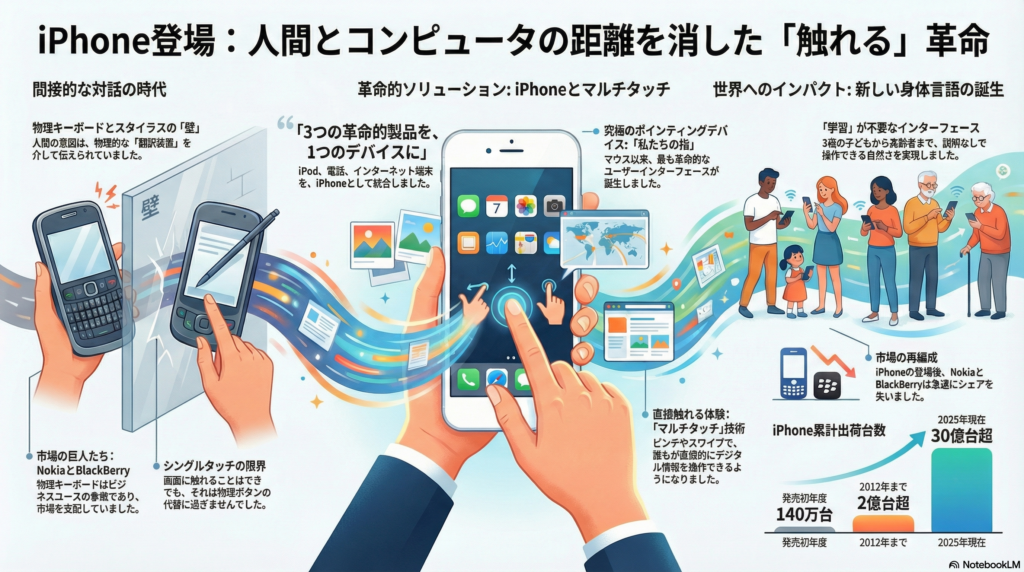 iPhoneが導入したのは、単なる新しい入力方法ではありませんでした。それは新しい身体言語でした。
