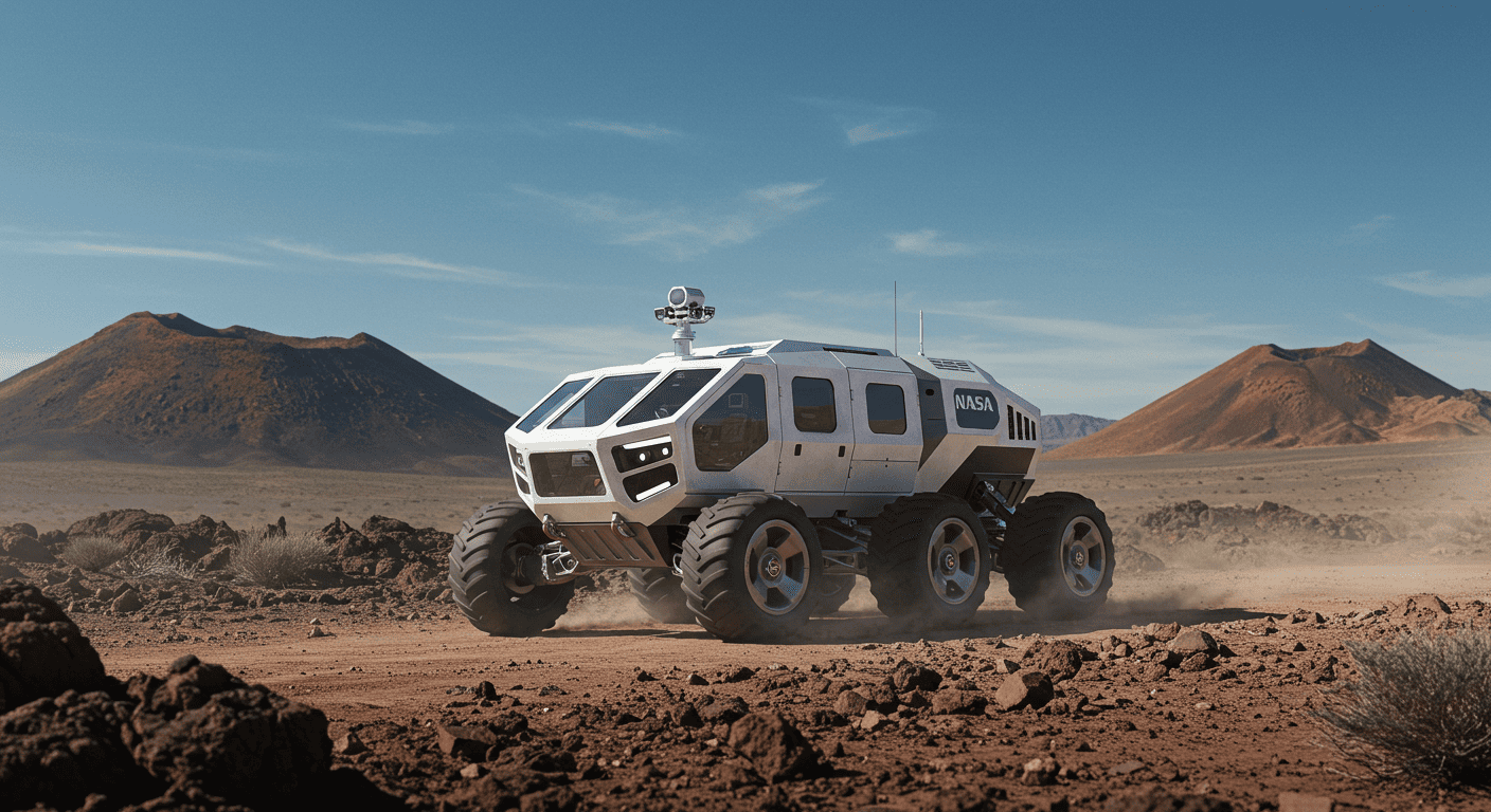 NASAの月面電気ローバーがアリゾナ州で試験走行を実施している様子を紹介。与圧キャビンと強化された機動性により月面探査に革命をもたらすと報じている。