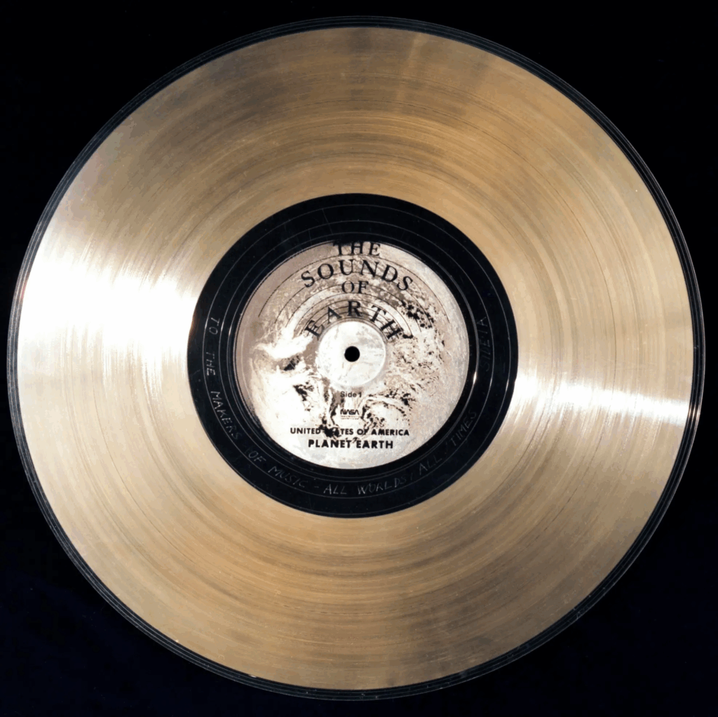 架空のエイリアンからの返信です。ジョークでした。しかし、このジョークには元ネタがあります。前年、NASAはボイジャー1号と2号を打ち上げ、それぞれに「ゴールデンレコード」を搭載していました。人類からのメッセージとして、27曲の音楽が選ばれました。
