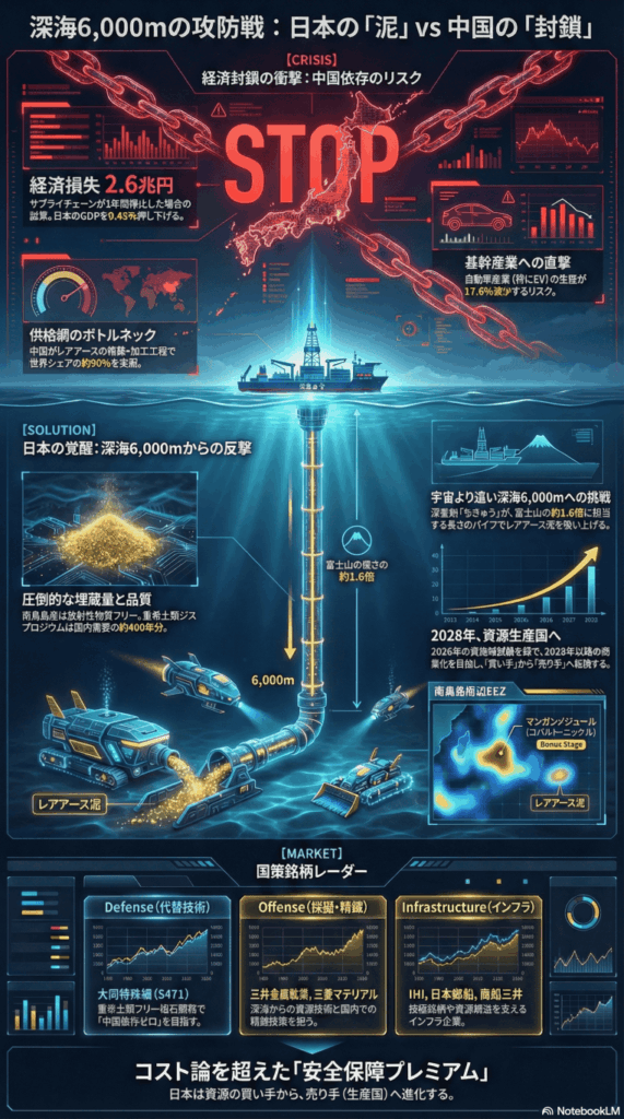 この航海は、単なる科学調査ではない。それは、中国による「輸出も止め、輸入も締め出す」というあからさまな経済的威圧(Economic Coercion)に対する、日本の未来をかけた戦略的カウンターアタックに他ならない。ハイテク産業の”血液”とも言われるレアアースを自らの手で確保し、国家の自律性を取り戻すための、深海への挑戦が始まったのだ。