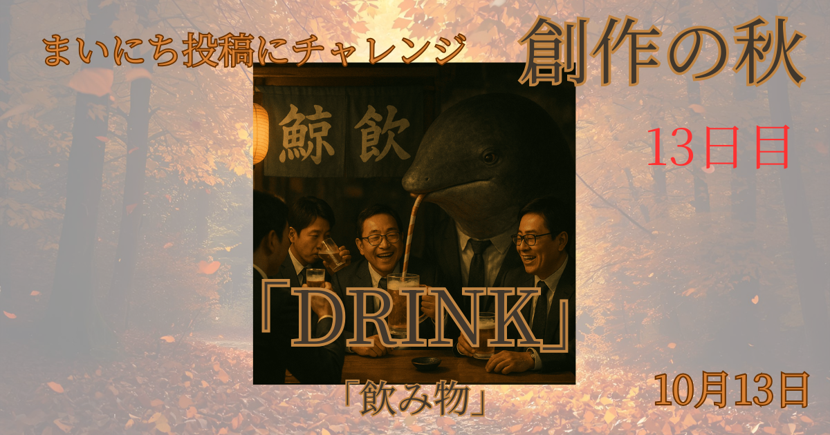 Inktober、お題はDRINK。飲み物…って、“真面目顔”で攻めてくる日が続いてない?お洒落プロンプトなら誰でも書ける。でも!今日も狙うは“なるほど”と“クスッ”の二刀流。