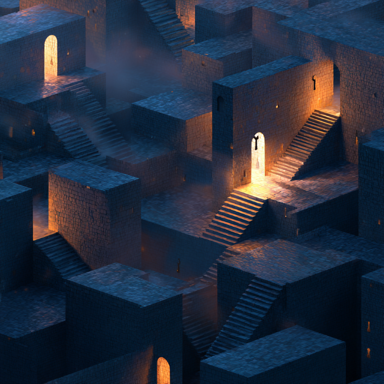 最初に描いてもらったのは、石造りの壁と無限に続く階段。