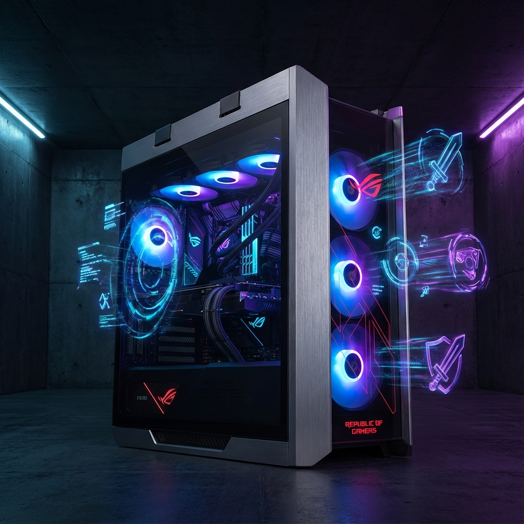 CES 2026でAsusが発表したROG G1000は、ケースファンにホログラム投影機能を搭載した革新的なゲーミングPCである。「AniMe Holo」と呼ばれるこの機能は、ファンを通して拡散された光でアニメーションするホログラムを投影し、ガラスのサイドパネルと前面に表示される。ユーザーは独自のGIF、MP4、JPEG、PNG動画をアップロードしてカスタマイズ可能だ。