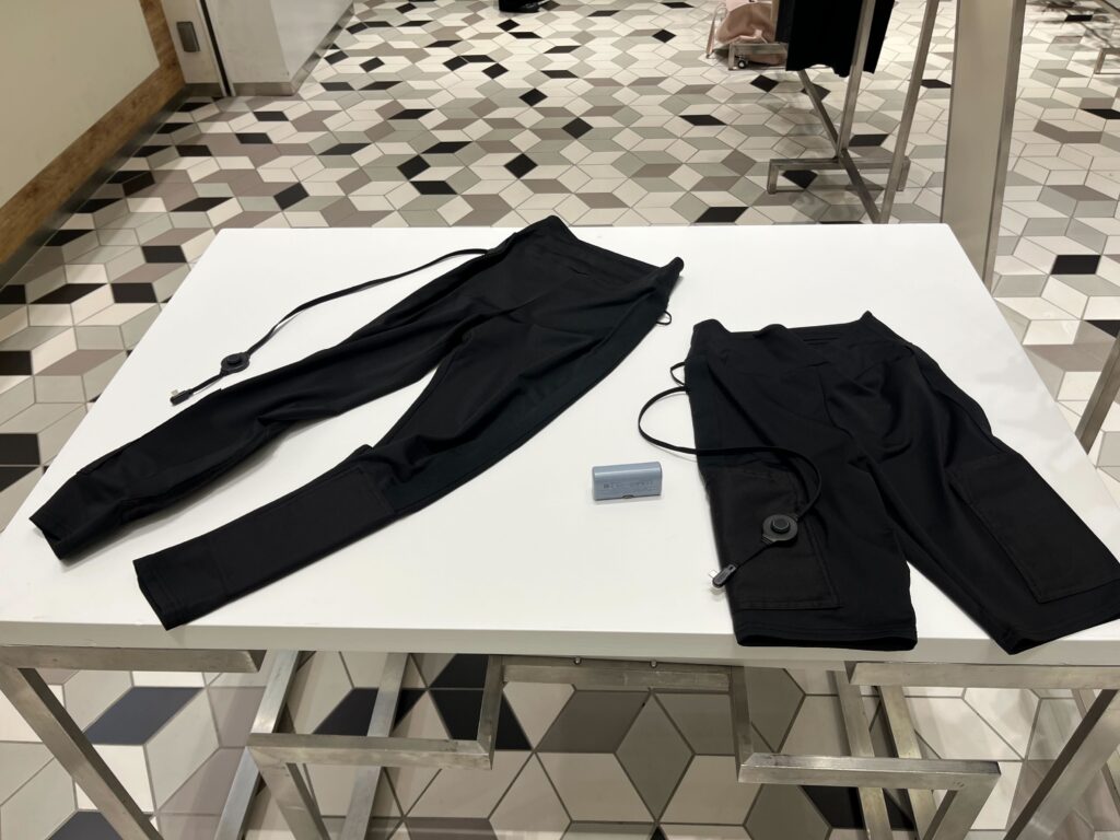 三吉「今回は『TEECHI 2025 – 2026 WINTER / SPRING COLLECTION』と題した通り、私たちはよく服について「秋冬用の服」というカテゴライズをしますよね。しかし、今の時期秋でも暑く、春でも肌寒い日が続くことが多くなりました。現代の気候に合わせて秋冬ではなくて、シーズンごと冬と春ということで、春にも対応できるようなベージュのセットアップ(写真左)も作っています。こうやってテクノロジーによって現代のストレスを軽減しつつ新しいファッションの可能性を私たちは模索しています」