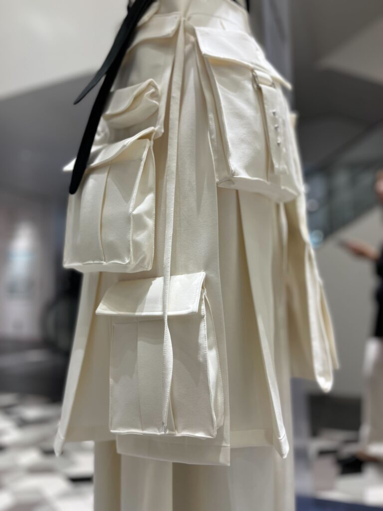 このAIによるデザインを実現した服は、渋谷の多様な文化や多層的な側面、全体の特徴となっている様々な形状のポケットは渋谷の混沌とした事物が潜んでいることを表現しているらしいです。