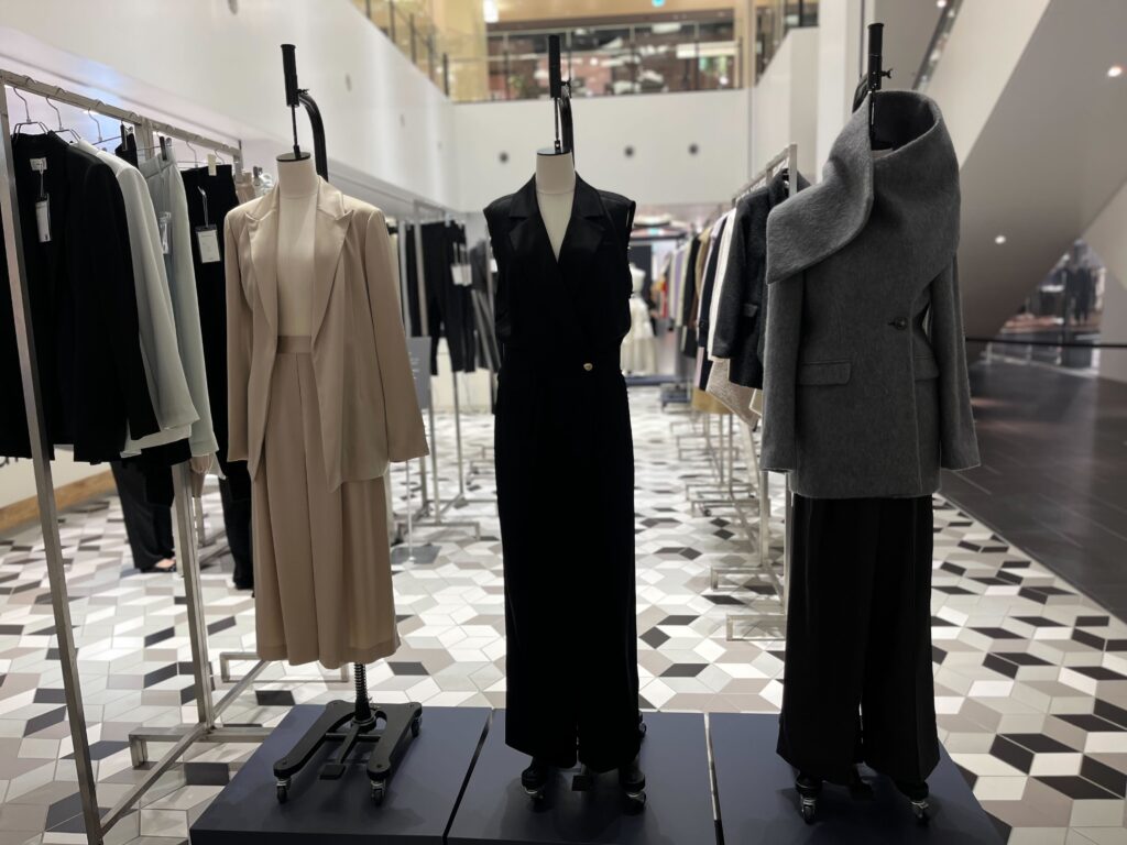 今回の特別企画として、AIファッションデザイナーのkinomura mihoさんとコラボレーションし、「AIがデザインして、実際に人間の手によって仕立てられた服」が展示されています。