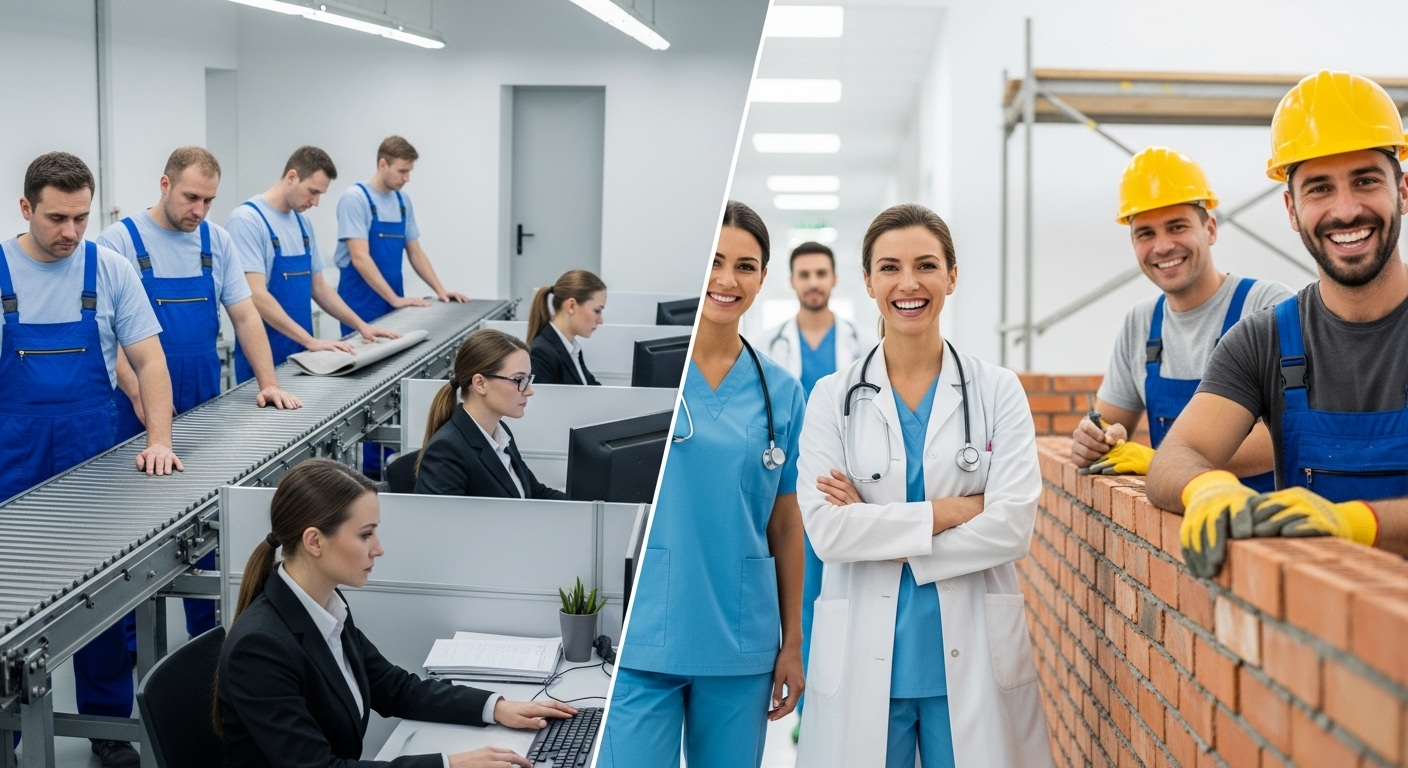 注目すべきは、英国経済全体では2035年までに230万の新規雇用が創出される一方で、100万から300万の低スキル職が消失するという予測です。つまり、雇用の「総数」は増えるものの、その「質」と「分布」が大きく変化するということです。専門職や準専門職への需要は高まる一方で、貿易、機械操作、事務職といった従来の中間層を支えてきた職種が縮小していきます。
