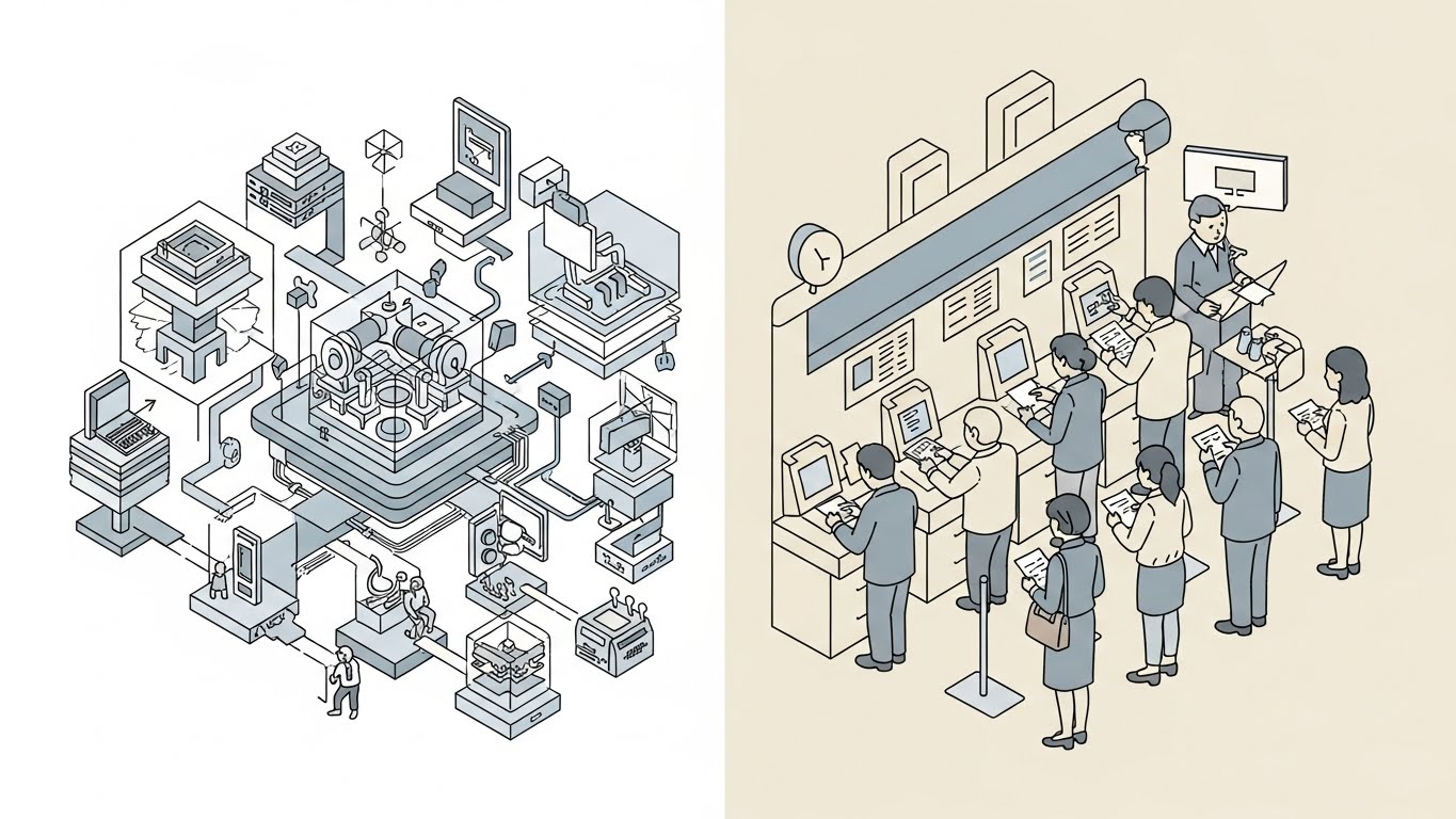 この記事では、この「進んでいるはずのDX」がもたらす違和感を出発点として、日本のデジタル化と産業構造が抱える課題を、技術・制度・運用の関係性から読み解いていきます。問うべきなのは、技術の優劣そのものではなく、それが誰にとって、どのような価値をもたらしているのかという点です。